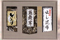 国内産椎茸香信35g、出し昆布40g、乾舞茸20g |