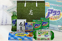 花王アタック27g×3×2箱、リードクッキングペーパー5P、除菌キッチンクリーナー24P、ジェルミント250ml、ナイロンクリーナー、入浴剤25g×3 |