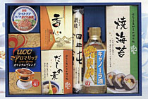 焼海苔全型4枚、昭和キャノーラ油300g、讃岐うどん200g、ライトツナフレークまぐろ油漬、UCCアロマリッチオリジナルブレンド |